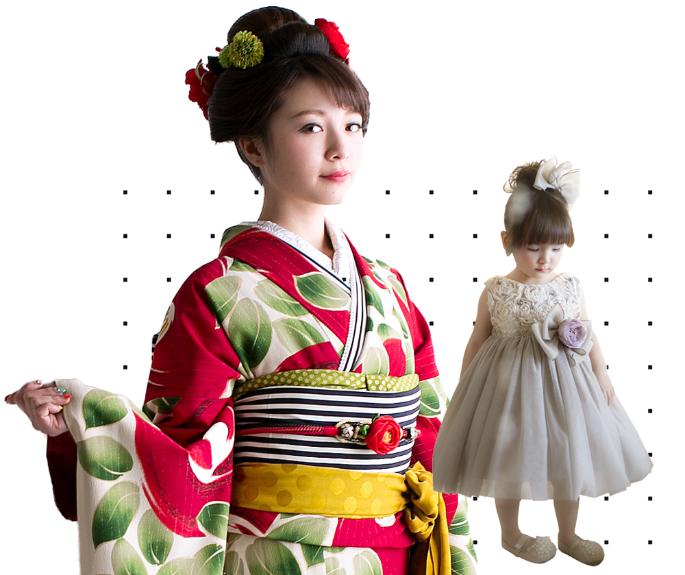美容院を併設している当店では、撮影前に髪の量や長さを合わせ、いちばん似合うヘアスタイルを提案できます。ご希望がございましたら、美容師にご相談ください。思い描くヘアスタイルを実現いたします。