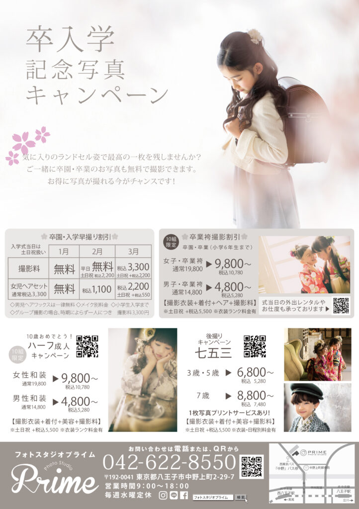 卒業・入学記念写真は、早いほどお得に撮影できます📷
