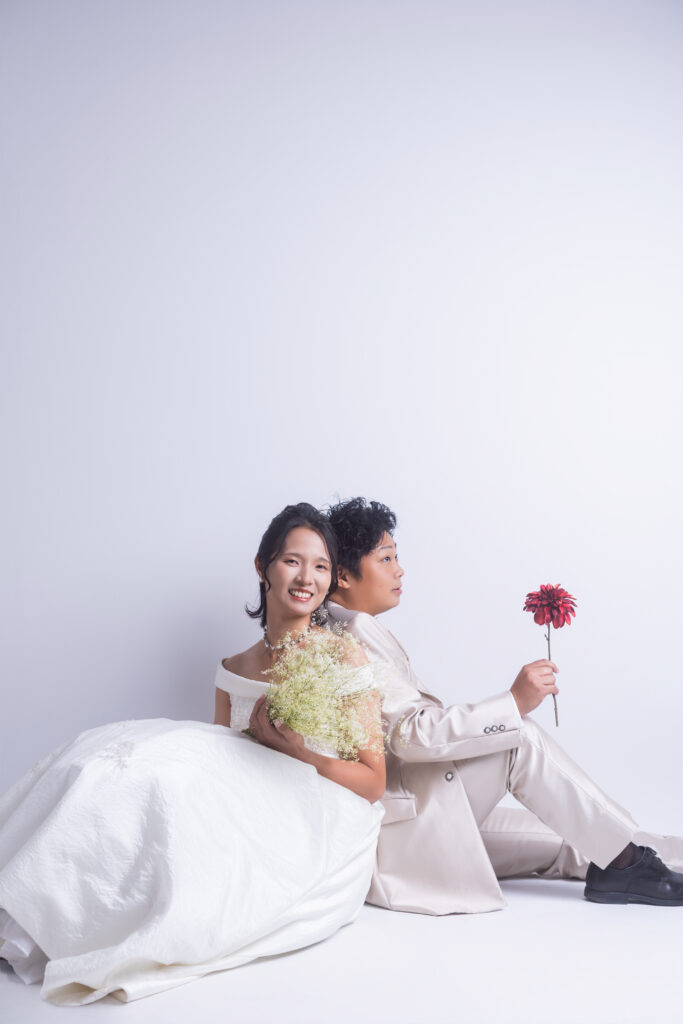 結婚記念日撮影はドレスを着て撮影も私服での撮影も可能でございます。