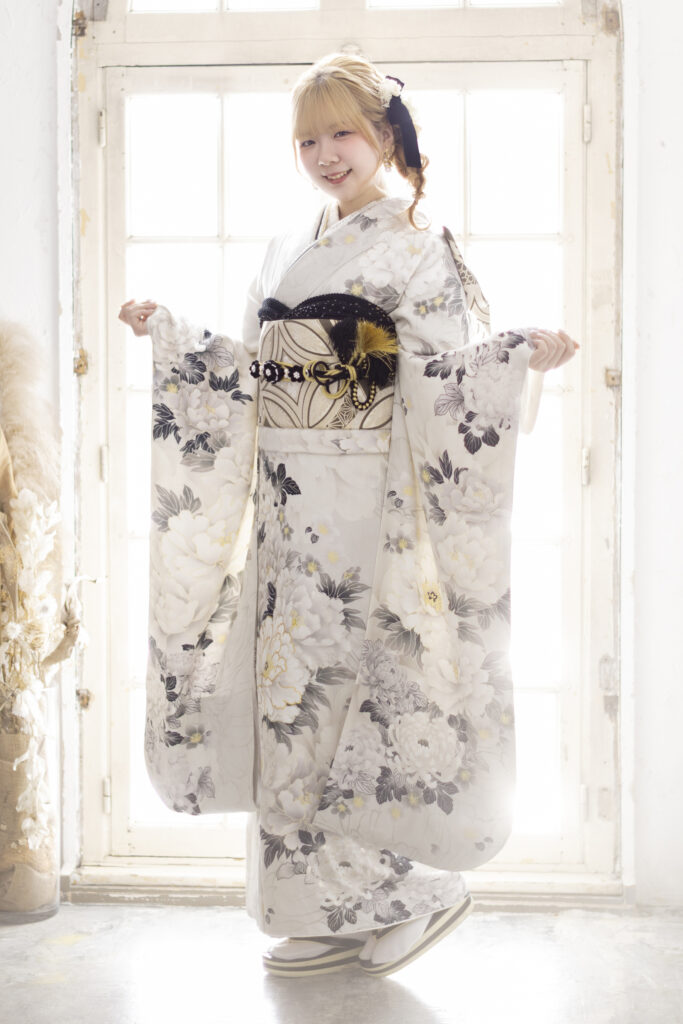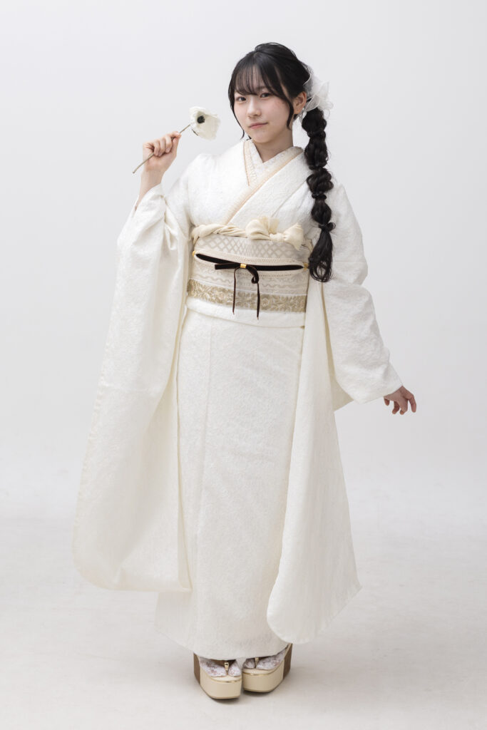 プロのスタイリストがお着物・小物を合わせ、コーディネート。帯は本格的な「結び帯」です。